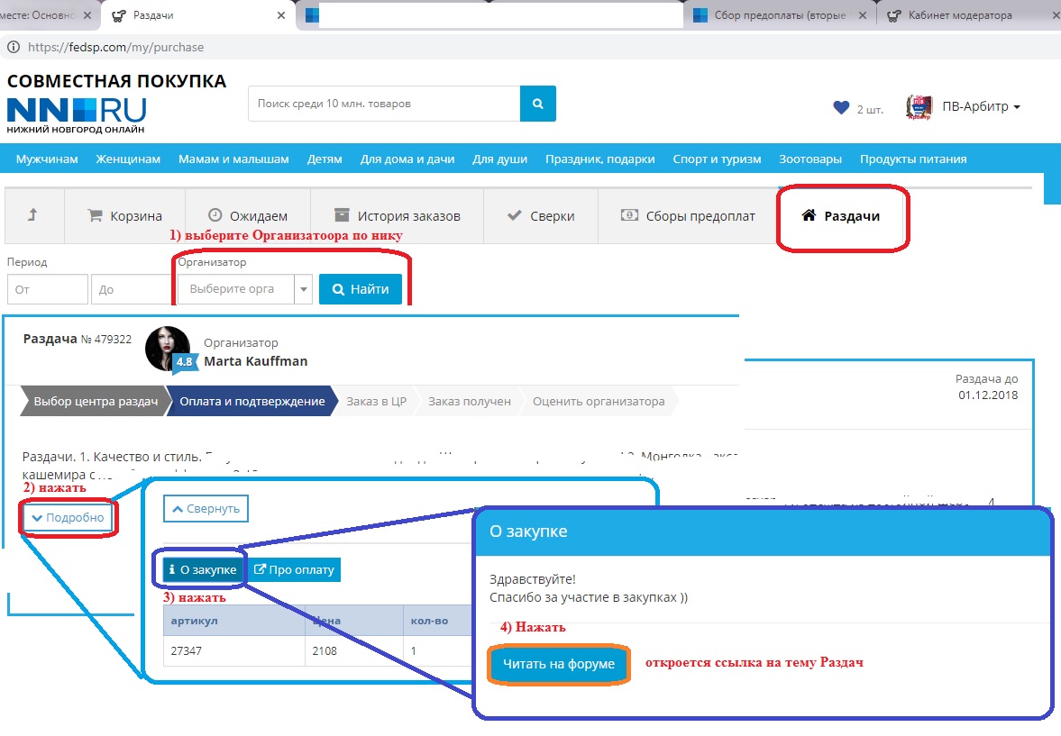 3) Найти по нику Организатора